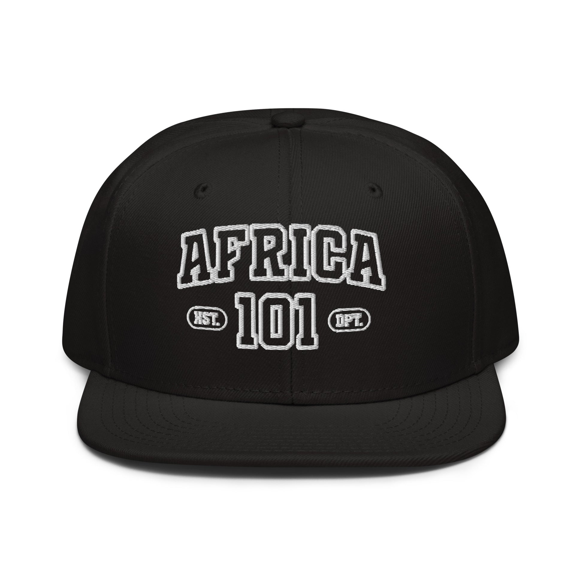 The Africa 101 Cap features a bold, collegiate-style design inspired by classic university varsity lettering. With strong, arched typography and clean embroidered details, it evokes the feel of an academic staple—like a cap worn by students of a proud institution. Centered around the phrase “Africa 101,” the design positions Africa as foundational knowledge—essential, timeless, and worthy of study. It’s more than just a cap—it’s a statement of cultural pride, education, and identity.