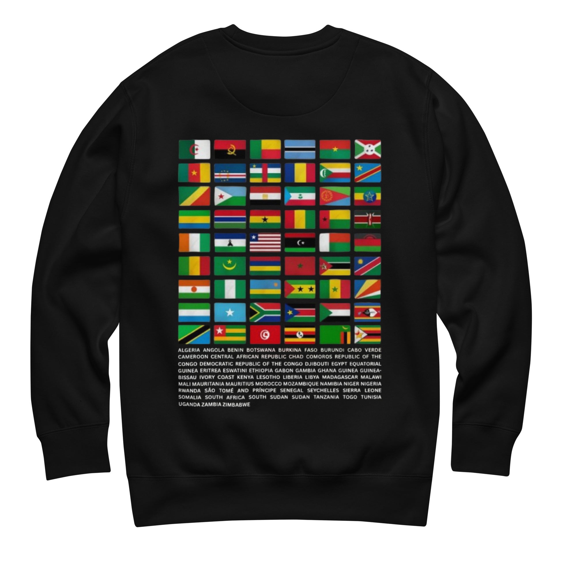 A bold and vibrant display of all 54 African national flags, beautifully arranged in alphabetical order with each country’s name below.