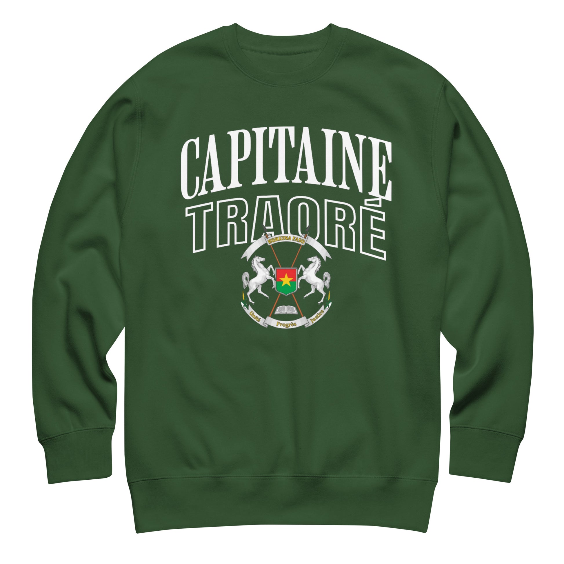The Capitaine Traoré Sweatshirt is a tribute to President Ibrahim Traoré of Burkina Faso and his bold leadership alongside fellow Sahel revolutionaries, Presidents Assimi Goïta of Mali and Abdourahmane Tchiani of Niger. More than just a sweatshirt, it stands as a symbol of resistance, unity, and a new era of Pan-African pride.