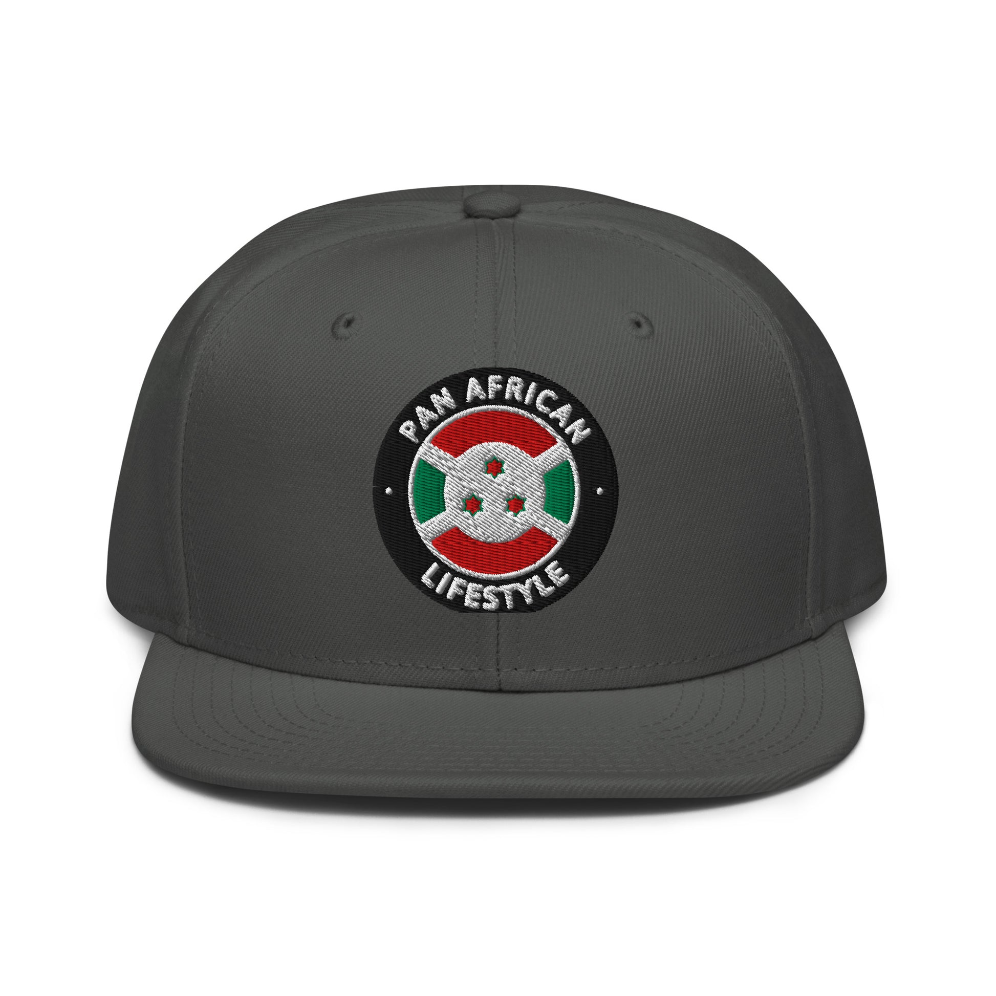 The colorfully inspired Classic Flag cap design of Pan African Lifestyle (PAL) builds upon the classic emblem, incorporating an African flag motif enclosed within concentric circles. The "Pan African Lifestyle" brand name symmetrically spans from top to bottom, contributing to a balanced and open-concept composition that encapsulates the essence of each African country in the centered flag.