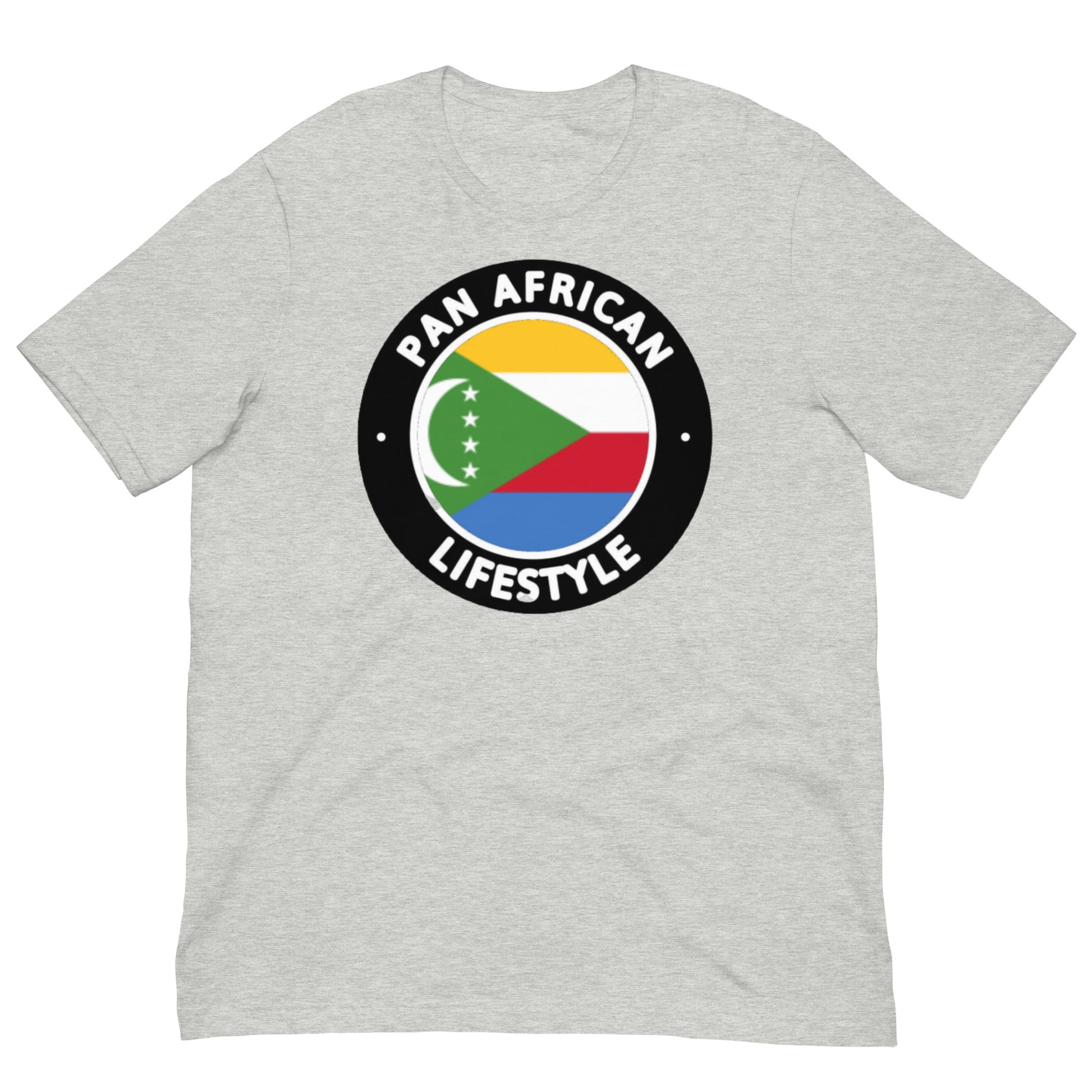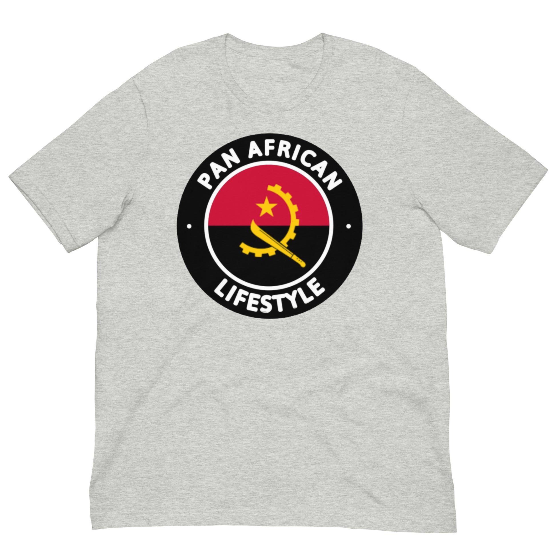 The colorfully inspired Classic Flag tee design of Pan African Lifestyle (PAL) builds upon the classic emblem, incorporating an African flag motif enclosed within concentric circles. The "Pan African Lifestyle" brand name symmetrically spans from top to bottom, contributing to a balanced and open-concept composition that encapsulates the essence of each African country in the centered flag.