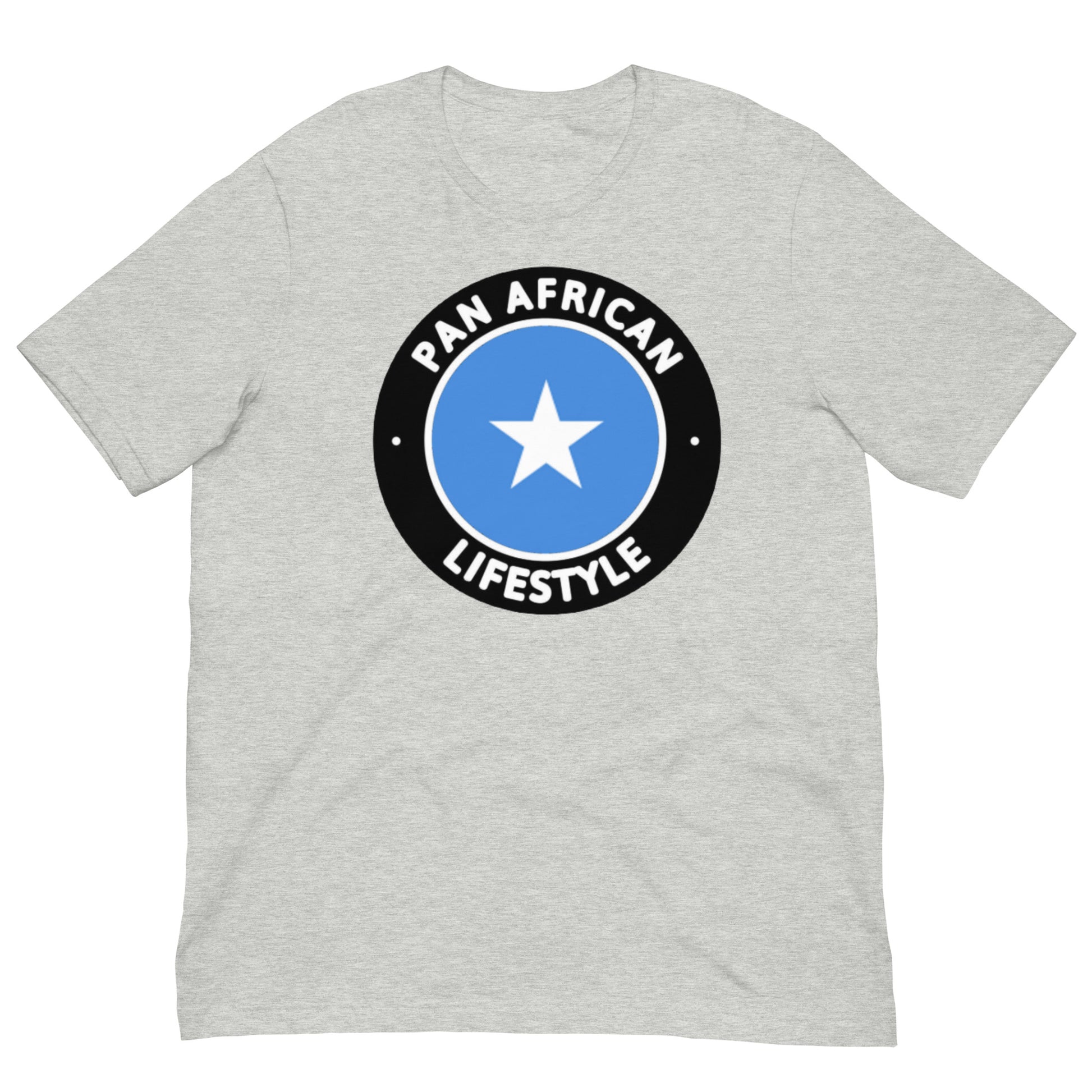 The colorfully inspired Classic Flag tee design of Pan African Lifestyle (PAL) builds upon the classic emblem, incorporating an African flag motif enclosed within concentric circles. The "Pan African Lifestyle" brand name symmetrically spans from top to bottom, contributing to a balanced and open-concept composition that encapsulates the essence of each African country in the centered flag.