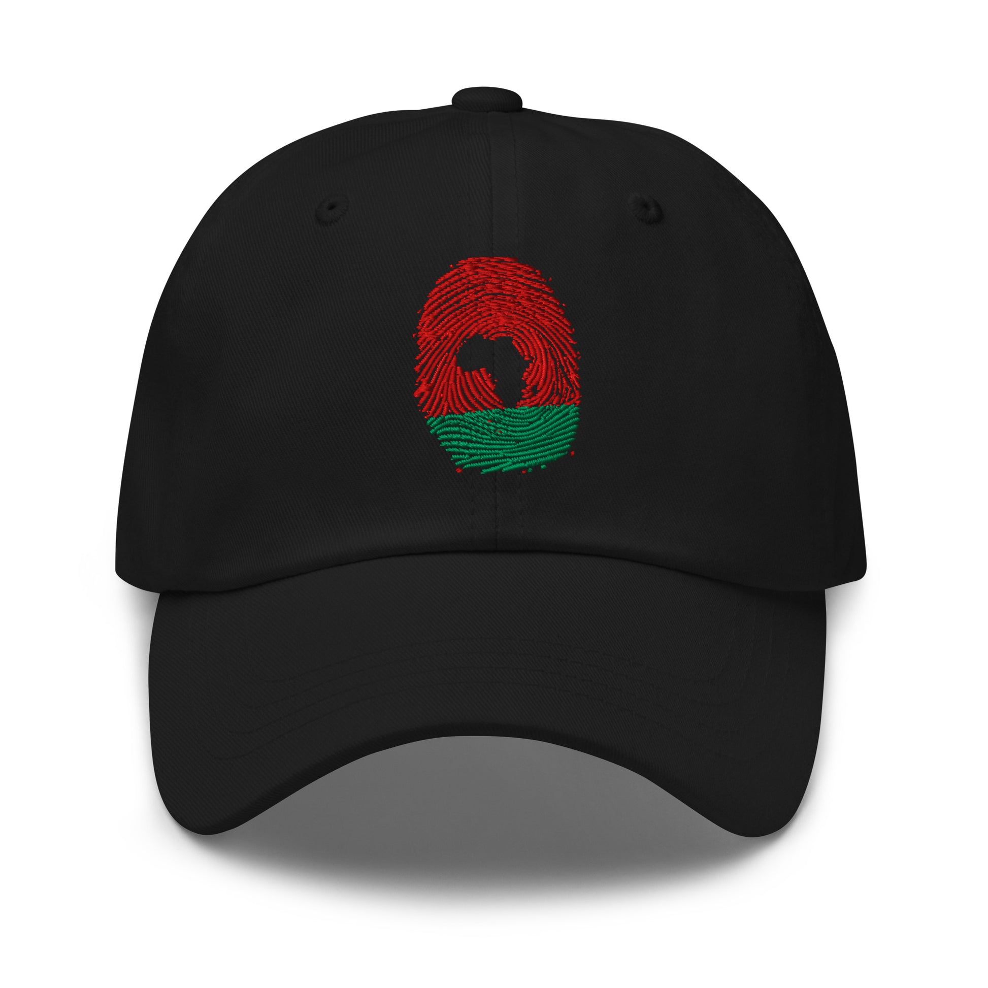 A fingerprint in Pan-African colors, with Africa’s silhouette at its heart, symbolizing identity, unity, and a shared Pan-African heritage.