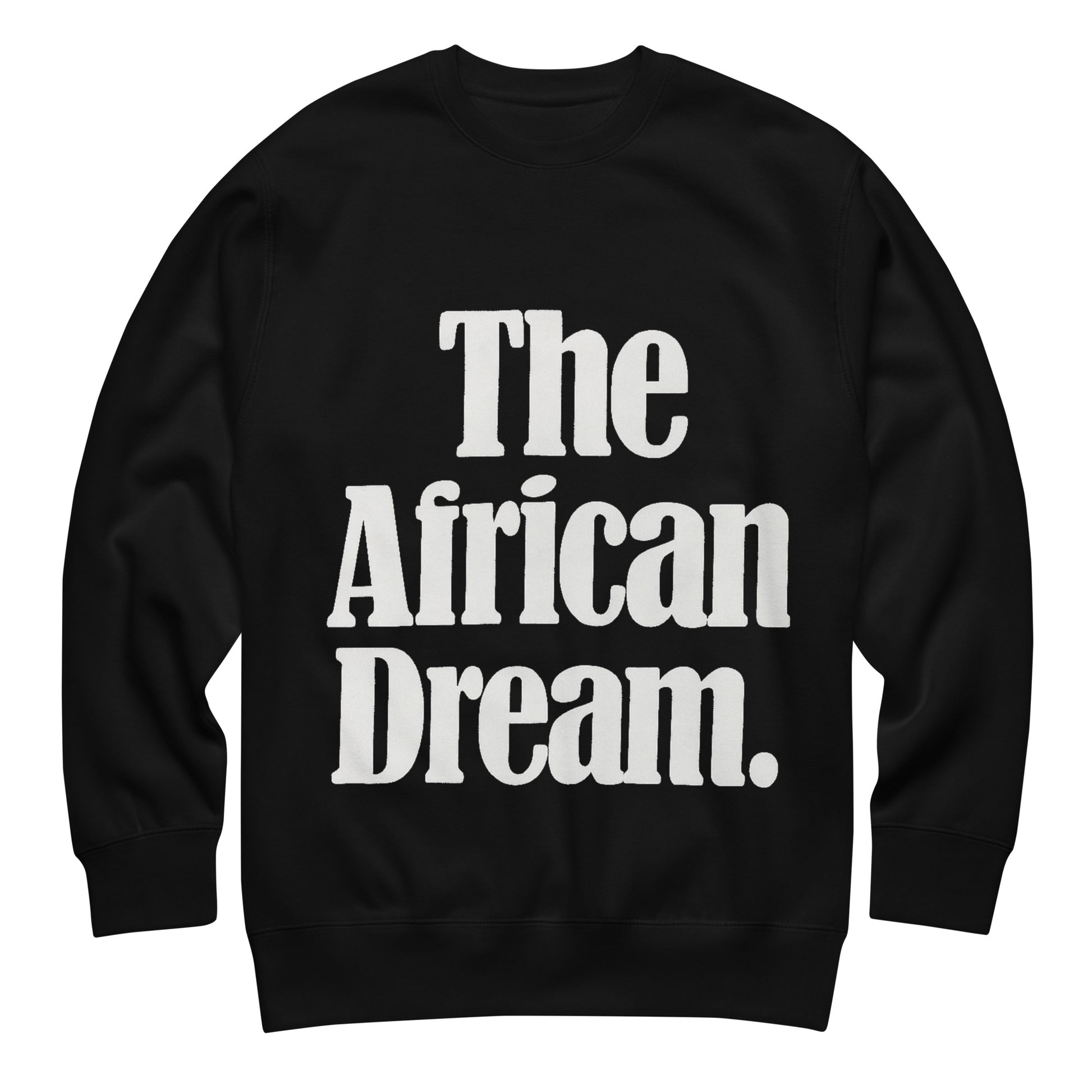 A bold white The African Dream in rounded-edge, minimalist lettering that evokes unity, pride, and shared aspiration.